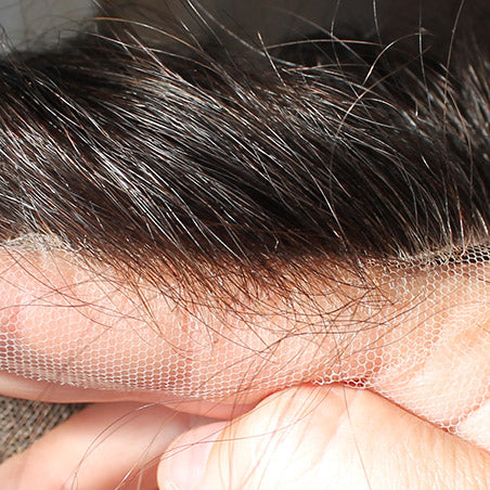 Our Swiss lace material boasts an ultra-thin profile, ensuring seamless blending with your skin. Coupled with meticulously bleached knots, our hair systems create a flawless illusion of natural hair growth from the scalp.