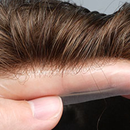 In our 0.06mm ultra-thin skin hair system, we utilize V-looped hair throughout the base. This method offers a significant advantage as there are no knots on the base, resulting in an incredibly natural-looking appearance.
